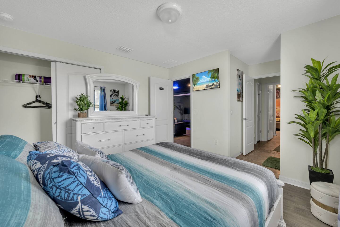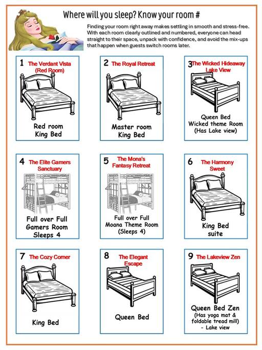 📌 Quick Reference Check-In: After 4:00 PM Check-Out: By 10:00 AM Wi-Fi Name: spectrumsetup–57 Wi-Fi Password: usefulfinish916 Book today before your dates disappear! AC Efficiency Tip: Keep the thermostat between 70 - 74° F for comfort and performance. Extreme settings can damage the system. Parking: Driveway parking available. Street parking allowed, but always check with the resort’s front gate. 🛏️ Sleeping Arrangements First Floor: • Bedroom 1: 1 King Bed + work area • Bedroom 2: 1 King Bed + work area Second Floor: • Bedroom 3: 1 Queen Bed - Wicked Room(water view) Bedroom 4: 1 bunk Bed - Gaming room (Full over Full) • Bedroom 5: 1 bunk Bed - Monoa's Room (Full over Full) • Bedroom 6: 1 King Bed on suite • Bedroom 7: 1 King Bed • Bedroom 8: 1 Queen Bed • Bedroom 9: 1 Queen Bed (lake view) 🛁 Amenities Included Towels & Linens Provided We do provide a small welcome kit to get you started. (Toilet paper, paper towels, laundry detergents, dish washing utensils and detergents, shampoo, conditioner, soap, face towels and a few more) Please stop by the nearest supermarket to gather any additional items you may need for the duration of your stay - Walmart is 12 min away, Publix is 13 min away. Washer & Dryer (Detergent for 4–5 loads included) Roku TVs in all Bedrooms Hair Dryers in all Bathrooms (Kids’ shared bathroom may have a loose one in the drawer) Ceiling Fans & Lights: Controlled by remote and wall switch (switch must be ON for remote to work) Pool Towels: Entryway or Laundry Area Extra Bath Towels: Found in bathrooms or bathroom closets 🏊 Pool & Spa Pool Heating: $35/day; (minimum must be 2 consequtive days. Request at least 24 hours in advance. Pool/spa heat takes ~1.5hr/degree change in temperature Spa and pool are the same temperature but can be heated separately but not together. Additional pool heat heat pool to 90 degrees and Spa to 98 degrees. spa is a hot tub with separate massiging jets pool lights can be controlled by guest. Safety: Pool fence installed; please supervise children at all times 🍽️ Kitchen & Dining Fully stocked with cookware, utensils, dinnerware, wine glasses, unbreakables for kids. Coffee Station: Includes basic coffee 9 K-cups), filters, and mugs, coffee mate, sugar 🔥 BBQ Grill Available upon request for FREE Please clean after use; guests are responsible for basic cleaning after use. Do not use the grill under lanai or near walls/windows 🗑️ Trash & Recycling BAG all trash and tie securely and place in covered trash bin located to the left side of the driveway. No recycling but cardboards can be tied together separately. large trash can be disposed of in the resort dumpster behind the clubhouse $100 fine for improperly bagged or exposed trash (Resort rule) 🚗 Parking & Vehicle Rules Driveway fits up to 2 vehicles Street parking is permitted for up to 3 additional vehicles but check with the front gate No commercial vehicles, trailers, RVs, or boats per HOA rules 📦 Online Orders USPS may not deliver to vacation homes UPS, FedEx, DHL are preferred carriers - all package will be dicarded after guest leave-No Exceptions. Ask if deliveries can go to clubhouse; fees may apply. We are not responsible for undelivered or returned packages-All foreign objects are discarded at cleaning without exception. 🧼 Cleaning & Housekeeping Professionally cleaned prior to arrival No daily housekeeping provided during stay Mid-stay cleanings available for a fee upon request Please report any damages or missing items within 24 hours 🚭 Smoking & Pets No smoking or vaping inside the home — $500 penalty or deep cleaning cost if larger. No pets allowed — $500 penalty (Service animals allowed with advance documentation) 🏡 Windsor at Westside Resort Amenities Enjoy free access to the resort’s: Clubhouse with Café & Bar- opens at 10am. Heated Resort Pool & Lazy River Fitness Center Basket ball and tennis courts ✨ Welcome to Lakeview Lux at Windsor 9BR Villa | Private Pool & Spa | Game Room | Theater | Disney Nearby Step into your dream vacation home where elegance meets comfort, and every corner is designed for unforgettable memories. Lakeview Lux at Windsor is a sprawling 9-bedroom, 6-bathroom villa that offers the perfect blend of resort-level amenities and homey charm — tailored especially for large families, reunions, and multi-family groups seeking sunshine, space, and sophistication near Orlando’s top attractions. 🛌 Space to Unwind. Designed to Impress. With room for up to 22 guests, each bedroom offers its own theme and charm, whether you're staying in one of our spacious king suites or a fun-filled bunk room perfect for the kids. Every room includes premium linens, smart TVs, and thoughtful touches to make you feel right at home. Multiple King Bedrooms w/ Ensuite Bathrooms Kid-Friendly Themed Rooms (wicked, gamers and Moana's) Towels, Linens & Starter Toiletries Provided Central A/C & High-Speed WiFi Throughout 🎮 Game, Watch, Relax — Repeat. Enjoy non-stop entertainment without ever leaving the home. From family game nights to cinematic experiences, Lakeview Lux is your playground: Private Home Theater with Recliner Seating Fully Loaded Game Room: Air Hockey, Foosball, Video Games & More Smart TVs in Every Room + Roku Streaming Dedicated Loft Lounge for board games or quiet moments 🌴 Backyard Bliss — Florida Style Step outside to your private tropical oasis — designed for both sun-soaked fun and serene evenings under the stars. Screened-In Heated Pool & Spillover Spa Outdoor Dining & Loungers BBQ Grill available upon request Child Safety Pool Fence Installed (Pool heat available at $35/day; 48-hour advance request recommended.) 🍳 Fully Equipped Kitchen & Family Dining Cook up a feast or whip up snacks — the gourmet kitchen is stocked for any occasion. Stainless Steel Appliances & Cookware Blender, Coffee Maker, Toaster, Microwave, Air Fryer, Water Filter, Pan Cake Griddle, more. Am