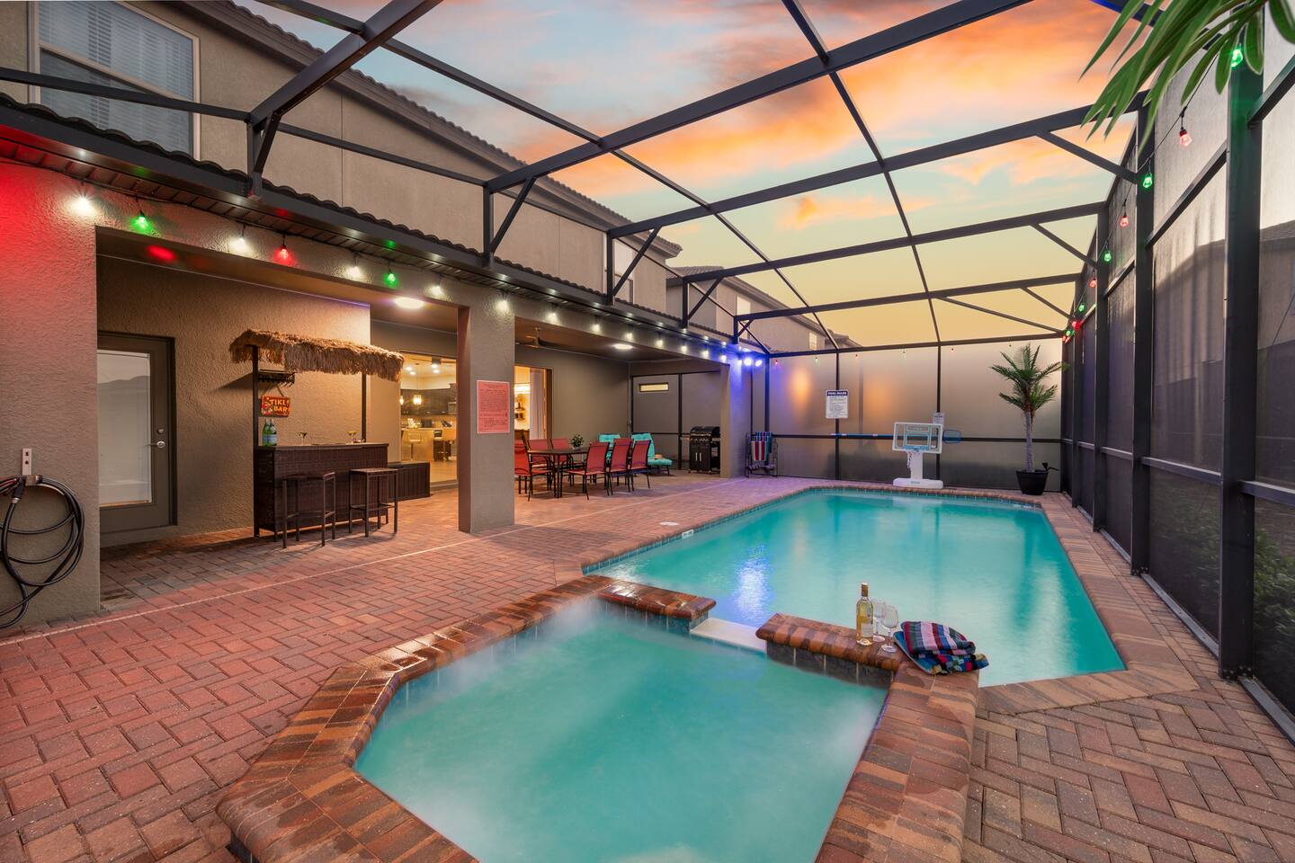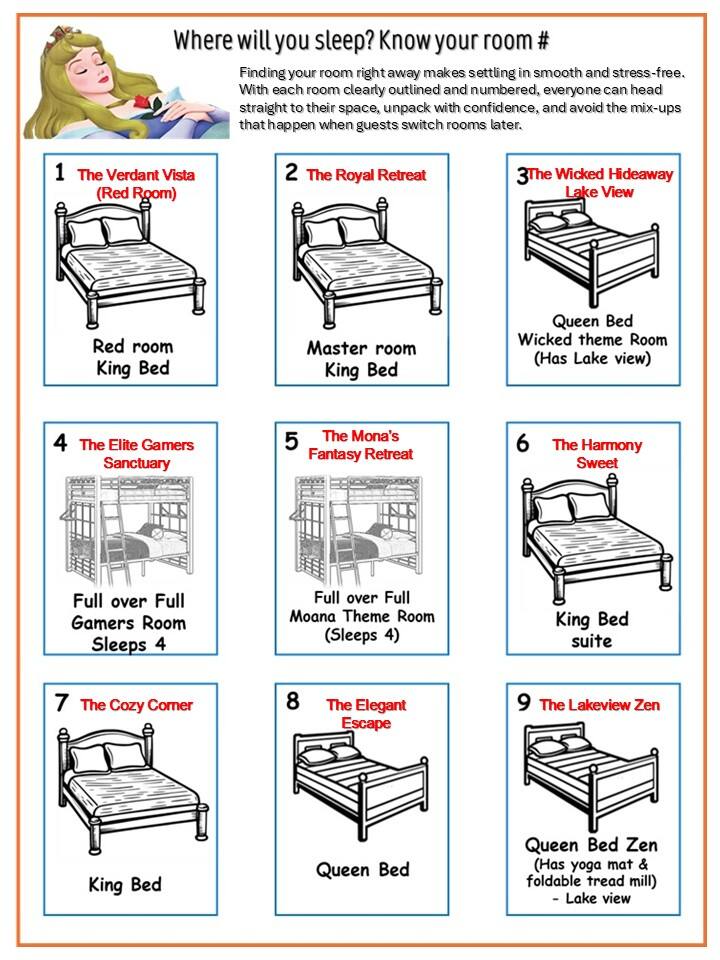 📌 Quick Reference Check-In: After 4:00 PM Check-Out: By 10:00 AM Wi-Fi Name: spectrumsetup–57 Wi-Fi Password: usefulfinish916 Book today before your dates disappear! AC Efficiency Tip: Keep the thermostat between 72–74°F for comfort and performance. Extreme settings will drastically decrease the efficiency and results in 2-3 hours to get back to your desired temperature. Parking: Driveway parking available. Street parking allowed for up to 5 cars in total per booking. Secure your parking permit at the checking gate. 🛏️ Sleeping Arrangements First Floor: • Bedroom 1: 1 King Bed + work area • Bedroom 2: 1 King Bed + work area Second Floor: • Bedroom 3: 1 Queen Bed - Wicked Room Bedroom 4: 1 bunk Bed - Gaming room (Full over Full) • Bedroom 5: 1 bunk Bed - Monoa's Room (Full over Full) • Bedroom 6: 1 King Bed • Bedroom 7: 1 King Bed • Bedroom 8: 1 Queen Bed • Bedroom 9: 1 Queen Bed (lake view) 🏡 Amenities Included • Towels & Linens Provided – fresh and ready for your stay. • Welcome Kit – A thoughtful starter pack with bottled water, coffee pods, tea, paper towels, toilet paper, soap, shampoo, conditioner and a few dishwasher/laundry detergent, garbage bags, to get you started. (For longer stays, please plan to replenish supplies as needed.) • Washer & Dryer – detergent included for several loads. • Roku TVs in All Bedrooms – stream your favorites anytime. • Hair Dryers in All Bathrooms – with a spare in the kids’ shared bathroom. Ceiling Fans & Lights: Controlled by remote and wall switch (switch must be ON for remote to work) Pool Towels: Entryway or Laundry Area Extra Bath Towels: Found in bathrooms or bathroom closets 🏊 Pool & Spa Pool Heating: Is an extra charge. A minimum must be 2 consequtive days. Request at least 24 hours in advance. Pool/spa heat takes ~1.5hr/degree change in temperature Spa and pool are the same temperature but can be heated separately but not together. Additional pool heat required to heat pool to 90 degrees and Spa to 98 degrees. spa is a hot tub with separate massiging jets pool lights and jet function can be controlled by guest. Safety: Pool fence installed; please supervise children at all times 🍽️ Kitchen & Dining Fully stocked with cookware, utensils, dinnerware, wine glasses, martini glasses, air fryer, waffle maker, rice cooker, unbreakables for kids, rtc. Coffee Station: Includes basic coffee starter pack - K-cups, filters, and mugs, coffee mate, sugar. 🔥 BBQ Grill Available upon request for FREE Please clean after use; We also provide free gas but guests are responsible for basic cleaning after use. Do not use the grill near walls/windows 🗑️ Trash & Recycling BAG all trash and tie securely and place in covered trash bin located to the left side of the driveway. No recycling but cardboards can be tied together and placed next to garbage pale. $100 fine for improperly bagged or exposed trash (Resort rule) 🚗 Parking & Vehicle Rules Driveway fits up to 2 vehicles Street parking is permitted for up to 3 additional vehicles but check with the front gate No commercial vehicles, trailers, RVs, or boats per HOA rules 📦 Online Orders USPS may not deliver to vacation homes UPS, FedEx, DHL are preferred carriers - all package will be dicarded after guest leave-No Exceptions. Ask if deliveries can go to clubhouse; fees may apply. We are not responsible for undelivered or returned packages-All foreign objects are discarded at cleaning without exception. 🧼 Cleaning & Housekeeping Professionally cleaned prior to arrival No daily housekeeping provided during stay Mid-stay cleanings available for a fee upon request Please report any damages or missing items within 24 hours of arrival. 🚭 Smoking & Pets No smoking or vaping inside the home — $500 penalty or deep cleaning cost if larger will apply. No pets allowed — $500 penalty (Service animals allowed - (dogs only, under ADA). ESAs are not protected under ADA . For ESAs, verifiable documentation from a licensed healthcare professional stating that the guest has a need for the animal may be required. 🏡 Windsor at Westside Resort Amenities Enjoy free access to the resort’s: Clubhouse with Café & Bar- opens at 10am. Heated Resort Pool & Lazy River Fitness Center Basket ball and tennis courts ✨ Welcome to Epic Escape Villa (EEV) 9BR Villa | Private Pool & Spa | Game Room | Theater Step into your dream vacation home where elegance meets comfort, and every corner is designed for unforgettable memories. Lakeview Lux at Windsor is a sprawling 9-bedroom, 6-bathroom villa that offers the perfect blend of resort-level amenities and homey charm — tailored especially for large families, reunions, and multi-family groups seeking sunshine, space, and sophistication near Orlando’s top attractions. 🛌 Space to Unwind. Designed to Impress. With room for up to 22 guests, each bedroom offers its own theme and charm, whether you're staying in one of our spacious king suites or a fun-filled bunk room perfect for the kids. Every room includes premium linens, smart TVs, and thoughtful touches to make you feel right at home. Multiple King Bedrooms w/ Ensuite Bathrooms Kid-Friendly Themed Rooms (wicked, gamers and Moana's) Towels, Linens & Starter Toiletries Provided Central A/C & High-Speed WiFi Throughout 🎮 Game, Watch, Relax — Repeat. Enjoy non-stop entertainment without ever leaving the home. From family game nights to cinematic experiences, Lakeview Lux is your playground: Private Home Theater with Recliner Seating Fully Loaded Game Room: Air Hockey, Foosball, Video Games & More Smart TVs in Every Room + Roku Streaming Dedicated Loft Lounge for board games or quiet moments 🌴 Backyard Bliss — Florida Style Step outside to your private tropical oasis — designed for both sun-soaked fun and serene evenings under the stars. Screened-In Heated Pool & Spillover Spa Outdoor Dining & Loungers BBQ Grill available upon request Child Safety Po